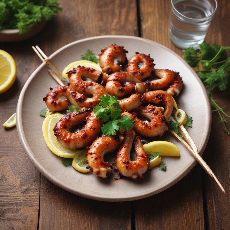 Deliciosos tentáculos de pulpo marinados y salteados en una sabrosa salsa de ajo, perfectos para un aperitivo o una cena especial.