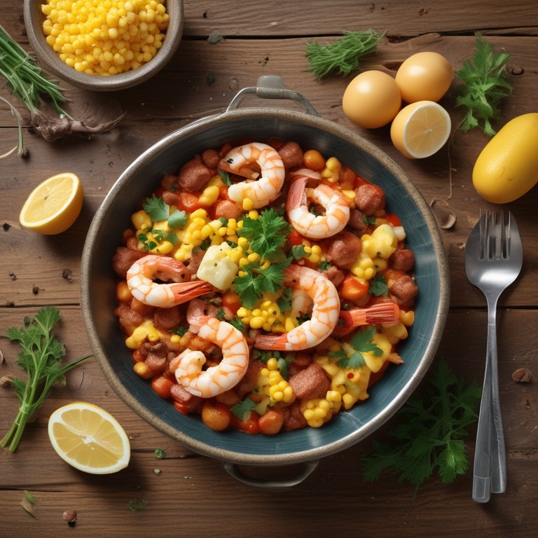 Un delicioso plato que combina la suavidad de los camarones con la carne molida, el dulzor del choclo y la cremosidad de los huevos, ideal para una comida reconfortante.