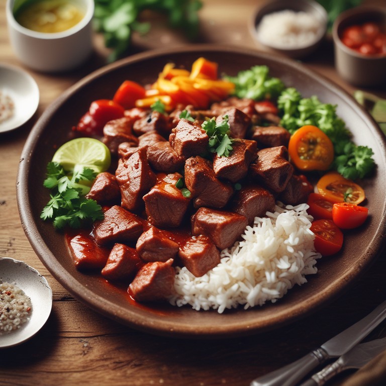 Un plato sabroso de trozos de res cocinados a fuego lento en una salsa de tomate especiada, perfecto para disfrutar en familia.