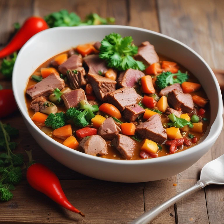 Este guiso de carne mixta es una explosión de sabores y texturas, ideal para compartir en familia. La combinación de panceta, carnes molidas y pollo con verduras frescas lo convierte en un plato nutritivo y delicioso.