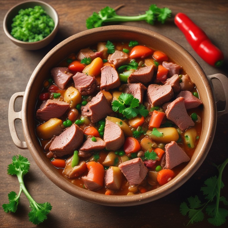 Este guiso de carne mixta es una explosión de sabores y texturas, ideal para compartir en familia. La combinación de panceta, carnes molidas y pollo con una variedad de verduras frescas lo convierte en un plato nutritivo y delicioso.