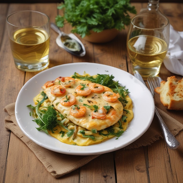 Una deliciosa tortilla española hecha con calabacín y gambas, perfecta para un almuerzo ligero o una cena.