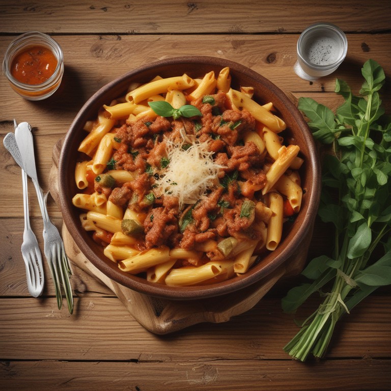 Una receta deliciosa y extravagante de pasta penne con una salsa de carne rica y cremosa, perfecta para una cena especial o un día cualquiera.