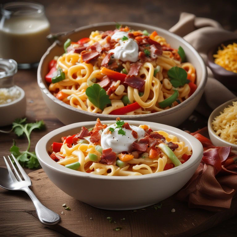 Una deliciosa pasta con una mezcla de verduras frescas y una cremosa salsa de yogur griego, perfecta para una comida nutritiva y sabrosa.