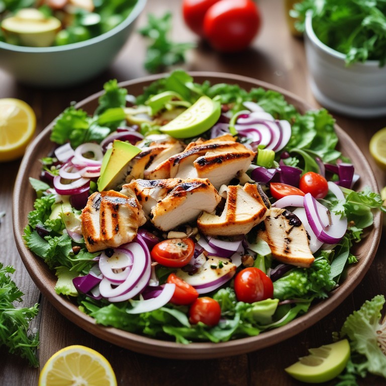 Ensalada de Pollo a la Parrilla con Aguacate y Vinagreta de Limón
