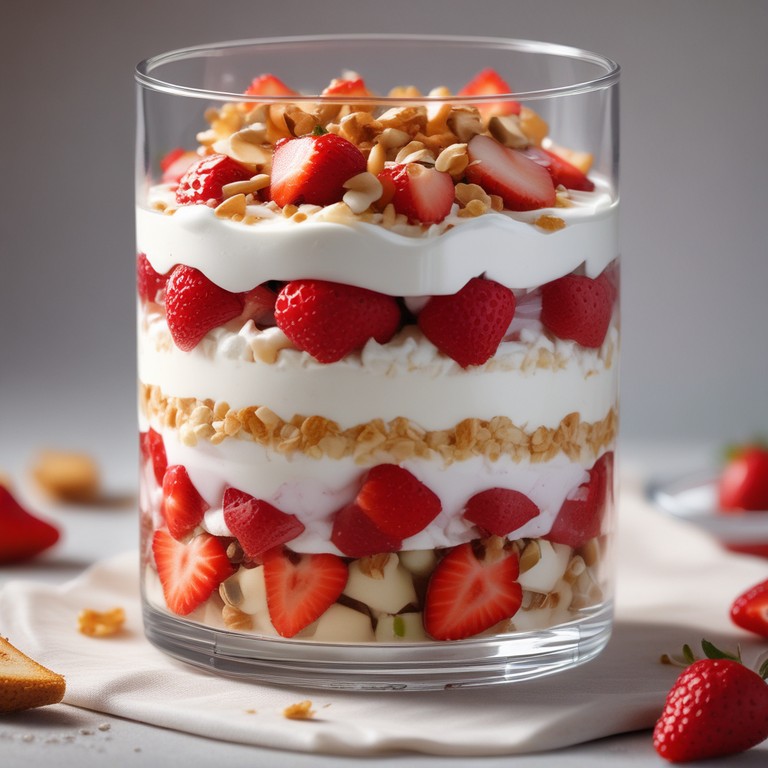 Un postre fresco y saludable que combina la dulzura de las fresas y otras frutas con la cremosidad del yogur y la crocancia de las nueces, ideal para cualquier ocasión.