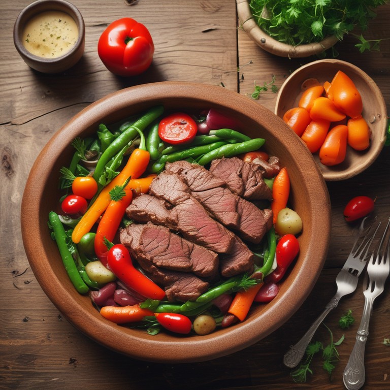 Una deliciosa receta de carne de res cocinada a fuego lento con una variedad de verduras frescas, perfecta para una comida reconfortante y nutritiva.