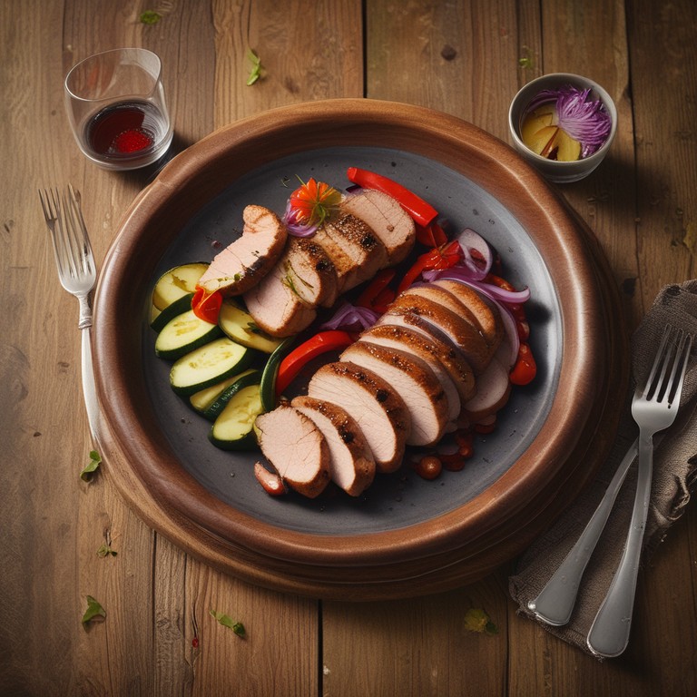 Solomillo de Cerdo a la Mostaza con Guarnición de Verduras Asadas