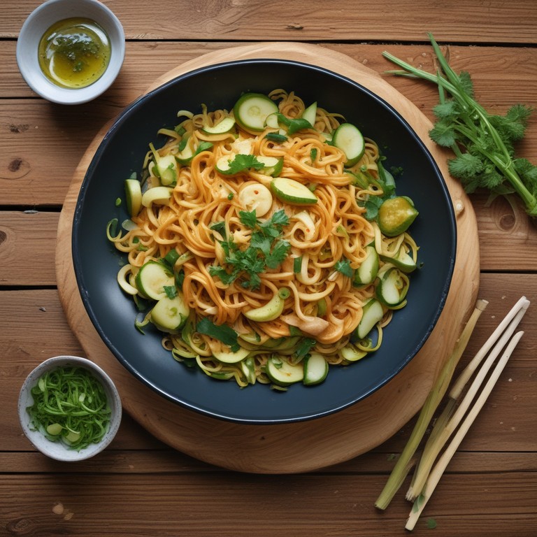 Una deliciosa receta de fideos salteados con zucchini y cebollín, perfecta para una comida rápida y saludable, sin salsa de soya ni aceite de sésamo, ideal para quienes buscan una opción más ligera.