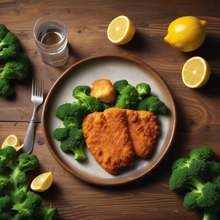 Una deliciosa milanesa de pollo crujiente acompañada de brócoli fresco, perfecta para una comida saludable y sabrosa.