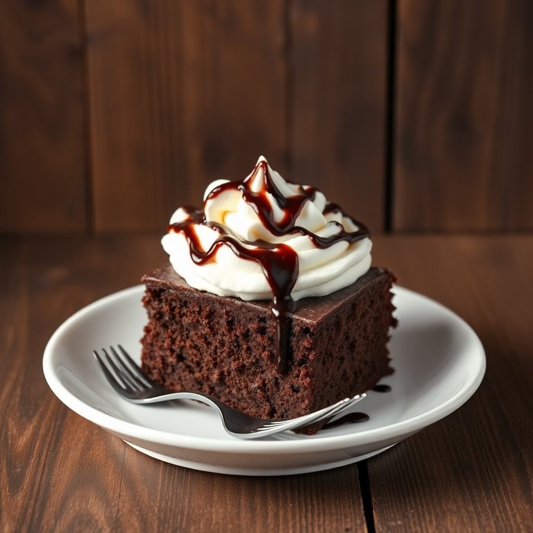 Indulge in the Smoocho Choco Tsunami Delight, a rich chocolate cake that is moist and fudgy, topped with luscious whipped cream and a drizzle of chocolate syrup. Perfect for chocolate lovers!