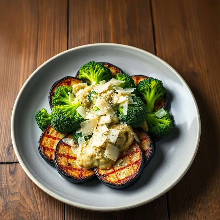 Uma deliciosa combinação de berinjela assada e brócolis ao molho de alho, perfeita como acompanhamento ou prato principal leve.