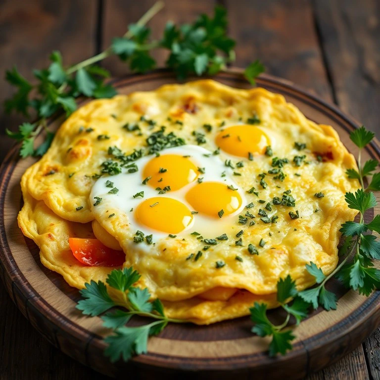 Una deliciosa tortilla que combina la suavidad del huevo con la textura de la mandioca cocida y el aroma del orégano, perfecta para un desayuno o una cena ligera.
