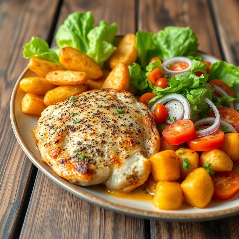 Pollo al Orégano con Papas Doradas y Ensalada Fresca