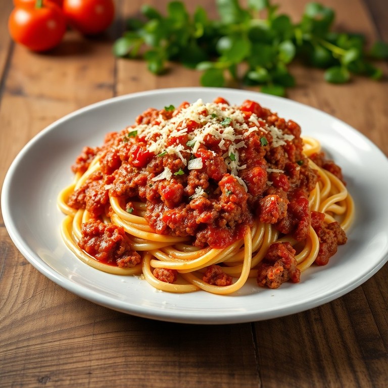 Una receta deliciosa de tallarines acompañados de una salsa roja rica y carne picada jugosa, perfecta para una comida familiar.