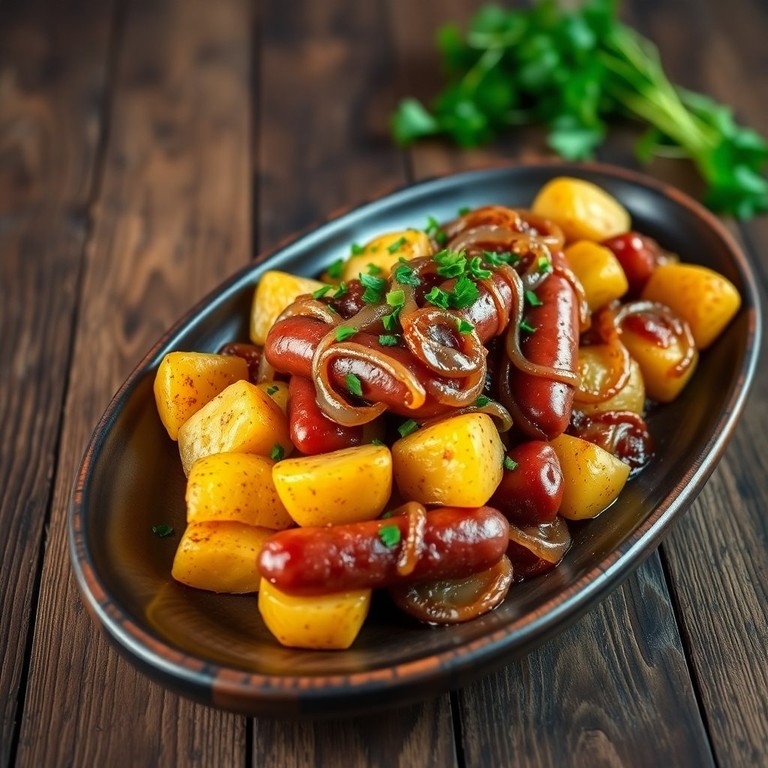 Papas a la Longaniza con Cebolla Caramelizada