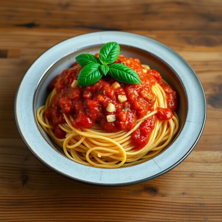 Tallarines Integrales en Salsa de Tomate con Ajo y Cebolla Salteada