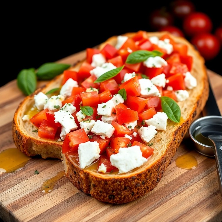 Mediterranes Tomaten-Käse-Brot mit Olivenöl