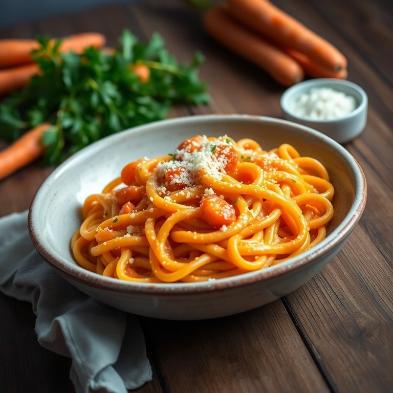 Una deliciosa pasta con una cremosa salsa casera de zanahoria que es rápida y fácil de preparar, perfecta para una cena ligera y sabrosa.