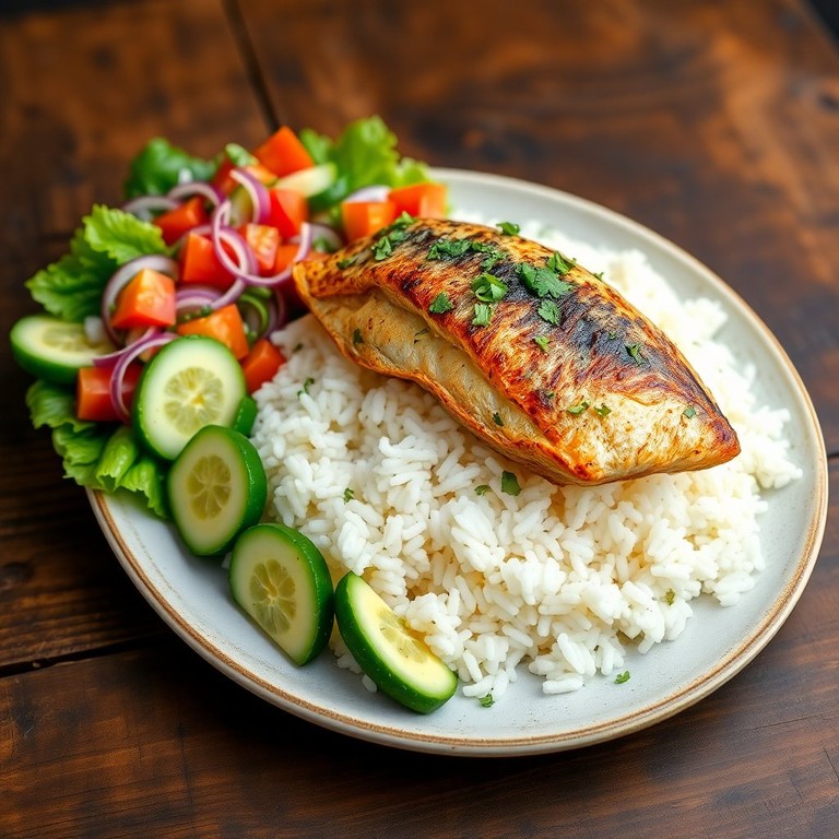 Arroz con Pescado al Vapor y Ensalada Fresca