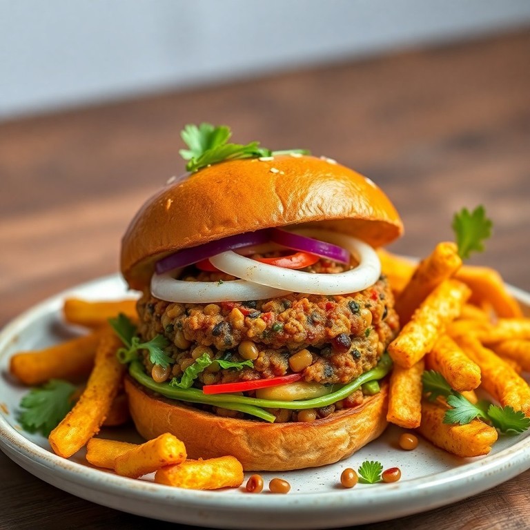 Hamburguesa de Lentejas con Ensalada Fresca y Yuca Crujiente