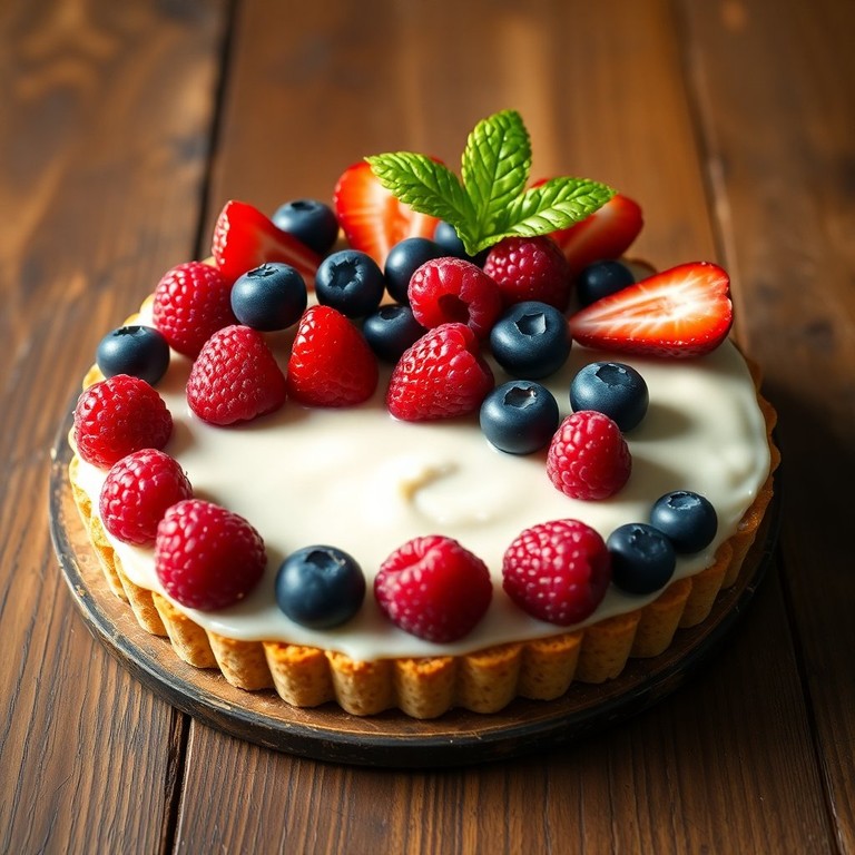 Una tarta elegante y deliciosa que combina la suavidad del ganache blanco con la frescura de las frutas del bosque, perfecta para cualquier ocasión especial.