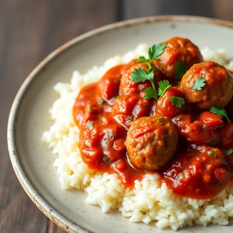 Arroz con Albóndigas y Salsa de Tomate Fresco