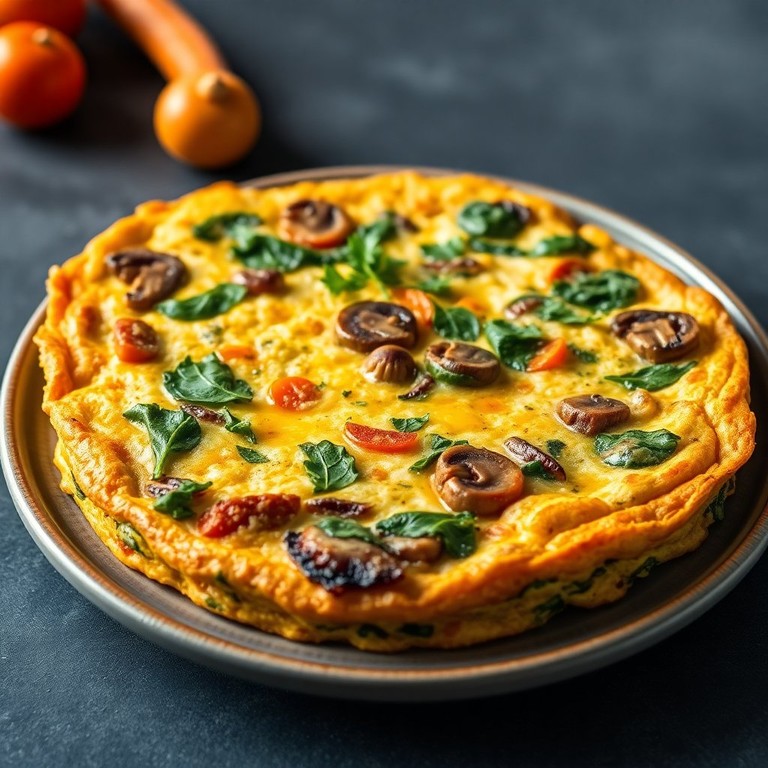 Tortilla Esponjosa de Espinacas, Champiñones y Zanahorias