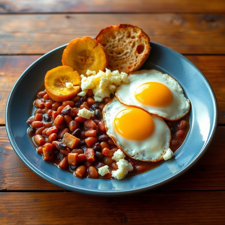 Desayuno Completo: Frijoles, Huevos y Plátano Frito