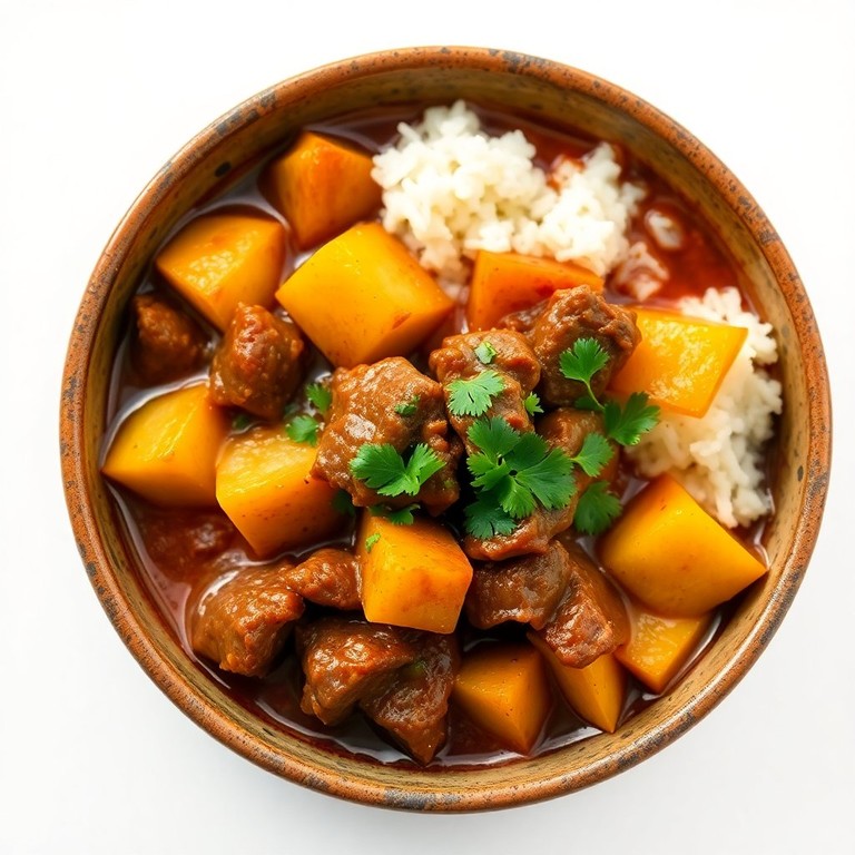 Un delicioso guiso que combina carne tierna, papas y plátano dulce, perfecto para una comida reconfortante.