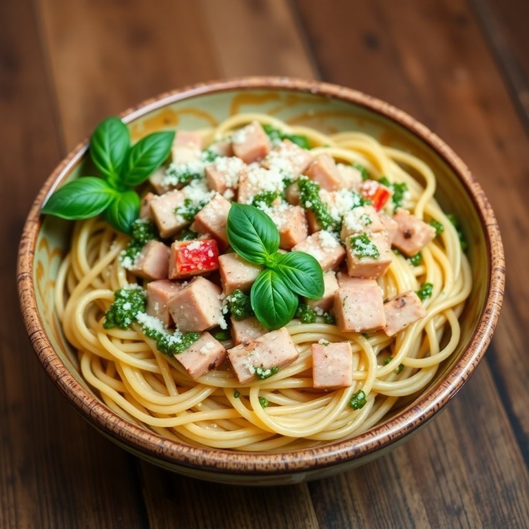 Pasta con Atún al Pesto de Albahaca Sin Piñones