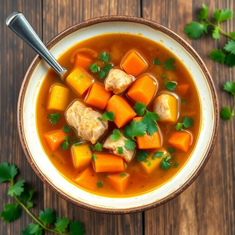 Una reconfortante sopa de pollo con zanahorias, cebolla y zapallo, perfecta para cualquier ocasión.