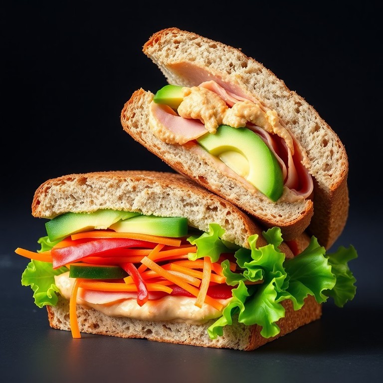 Sándwich de Jamón de Pavo con Mantequilla de Maní y Verduras