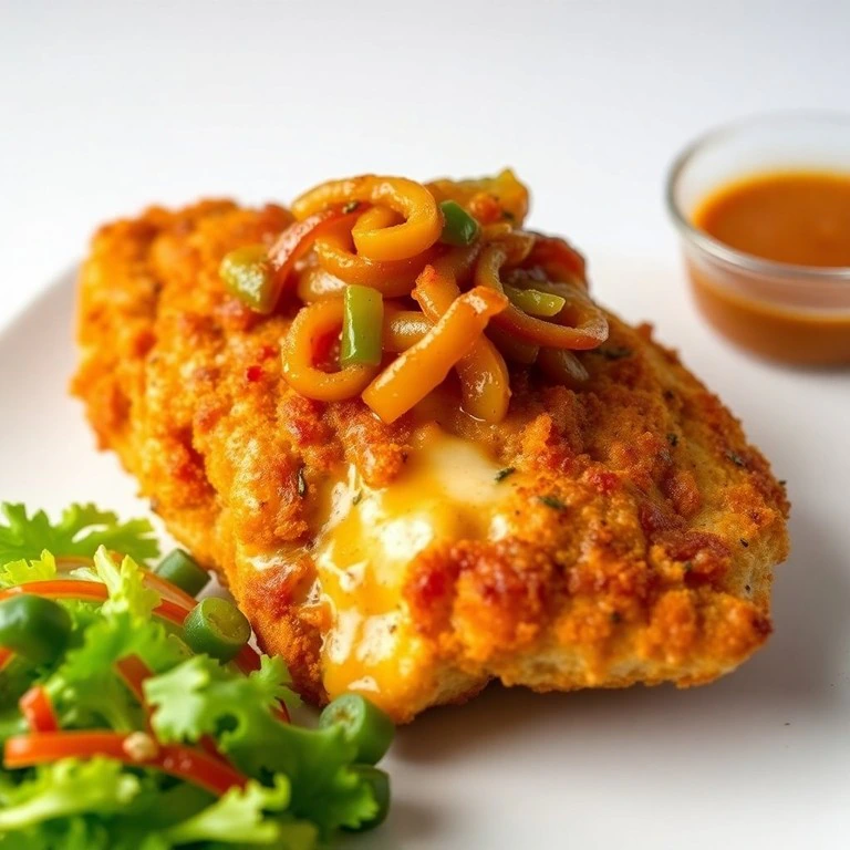Este delicioso pollo empanizado combina la crocancia del empanizado con el sabor intenso del ajo y el queso, creando un plato irresistible que encantará a todos.