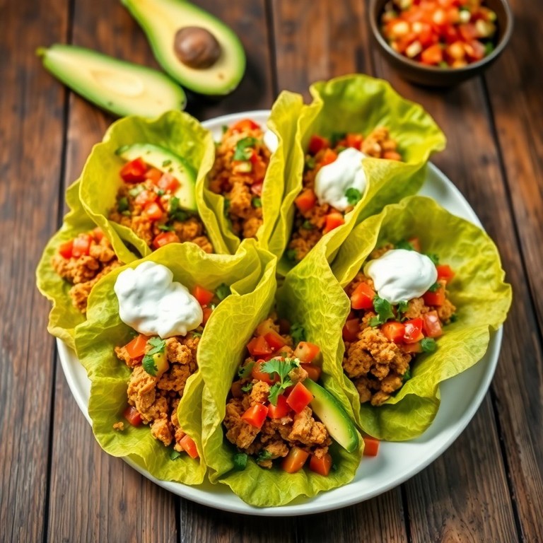 Estos tacos de lechuga son una opción fresca y saludable, perfectos para quienes buscan una alternativa sin pan. El pollo picante combina perfectamente con la frescura de la lechuga y los sabores del pico de gallo y el aguacate.