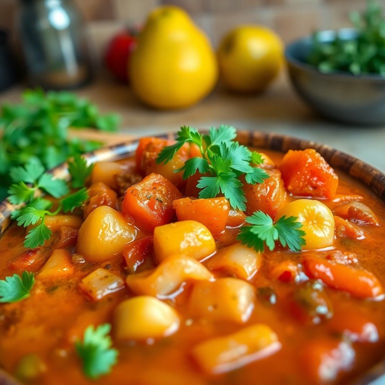 Un guiso reconfortante que combina la dulzura del tomate con la cebolla y especias, ideal para disfrutar en un día frío.