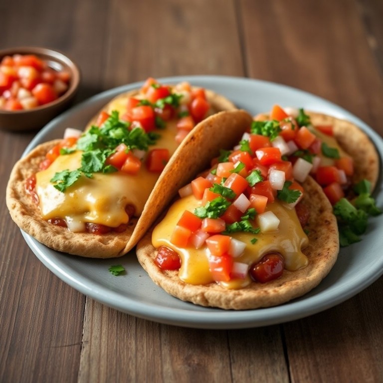 Disfruta de estos deliciosos molletes de pan integral, cubiertos con frijoles refritos, acompañados de un pico de gallo fresco y vibrante. Perfectos para un desayuno o almuerzo lleno de sabor y color.