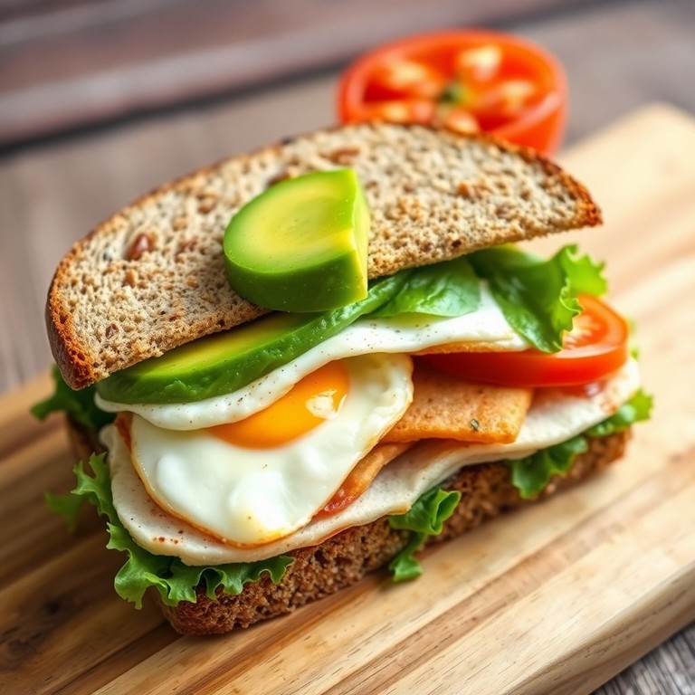 Un delicioso sándwich lleno de proteínas y cremosidad, perfecto para un almuerzo rápido o una cena ligera. La combinación de huevo, pechuga de pavo y aguacate ofrece un equilibrio perfecto de sabores y texturas.