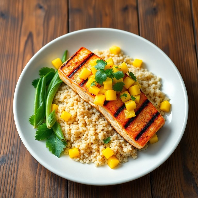 Salmón a la Parrilla con Salsa de Mango y Quinoa