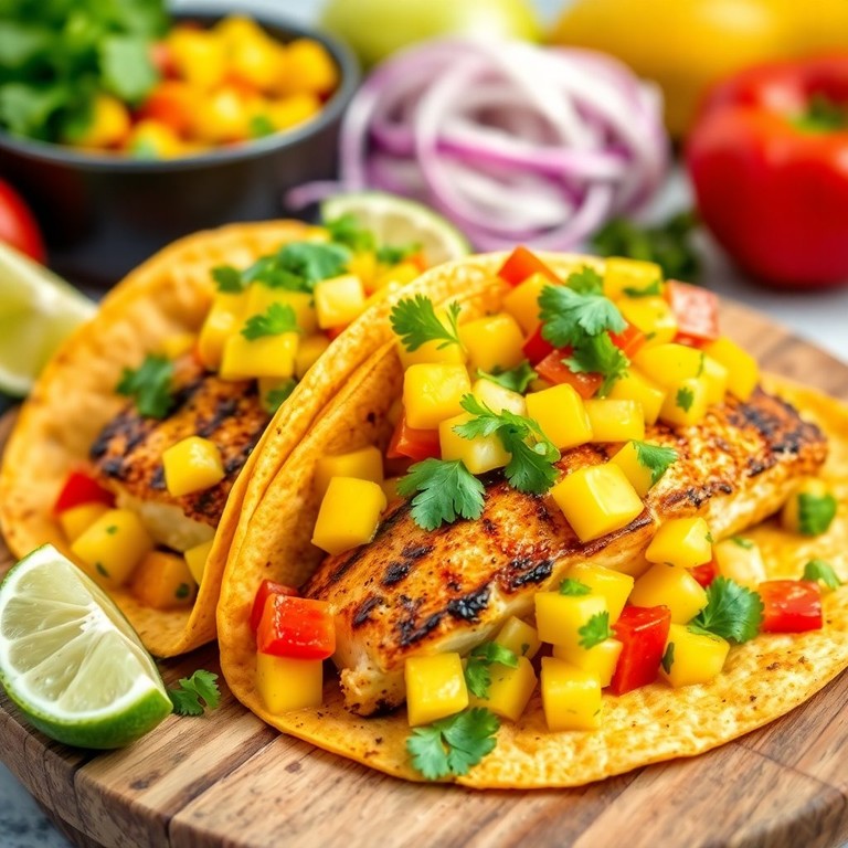 Tacos de Pescado a la Parrilla con Salsa de Mango