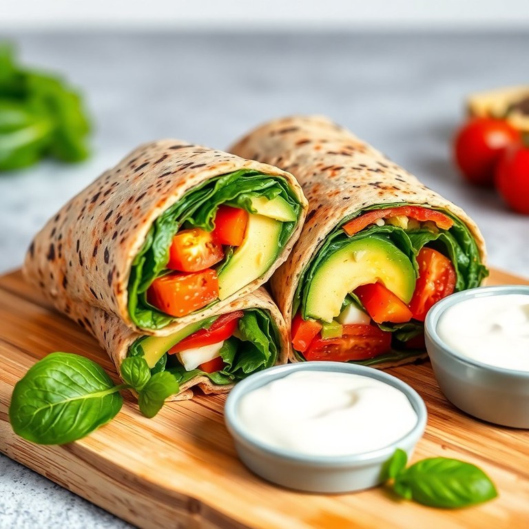 Wrap de Espinacas, Tomates y Aguacate con Salsa de Yogur