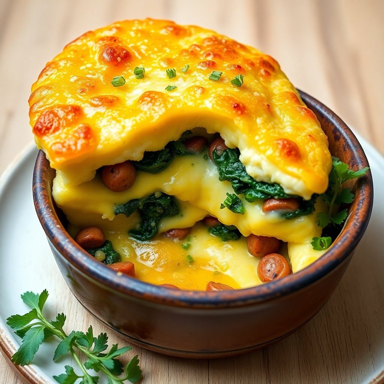 Uma deliciosa camada de purê de macaxeira com recheio de calabresa e couve, perfeita para um almoço ou jantar reconfortante.