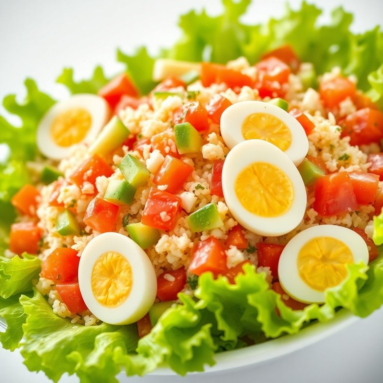 Una ensalada fresca y colorida que combina arroz, huevo, pepino y tomate, ideal para disfrutar en los días calurosos de verano. Perfecta como acompañamiento o plato principal ligero.