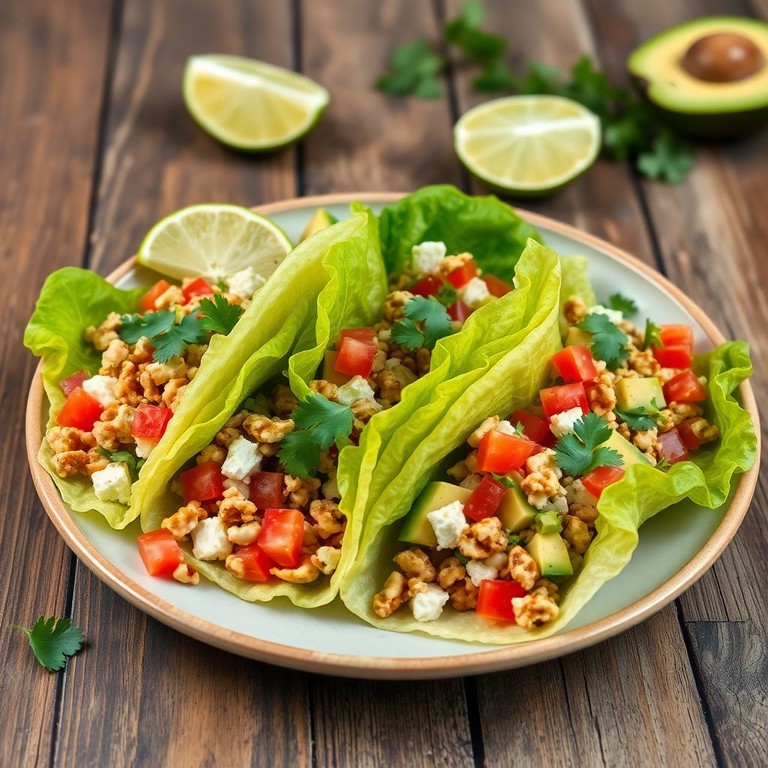 Estos tacos de lechuga son una opción saludable y deliciosa, perfectos para una comida ligera. La combinación de queso panela y nueces aporta un sabor único y una textura crujiente, mientras que el aguacate y el tomate añaden frescura y cremosidad.