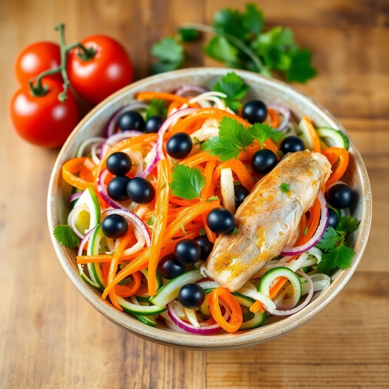 Una ensalada ligera y nutritiva con un toque de mar, perfecta para los días calurosos. Combina la frescura de los vegetales con el sabor del mar de la caballa, creando un plato delicioso y saludable.