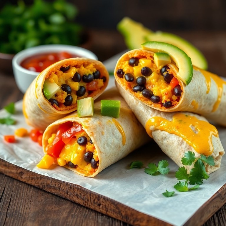 Estos burritos son una opción perfecta para el desayuno o el almuerzo, combinando la suavidad de los huevos con la textura de los frijoles y el sabor del queso. Son fáciles de preparar y muy satisfactorios.
