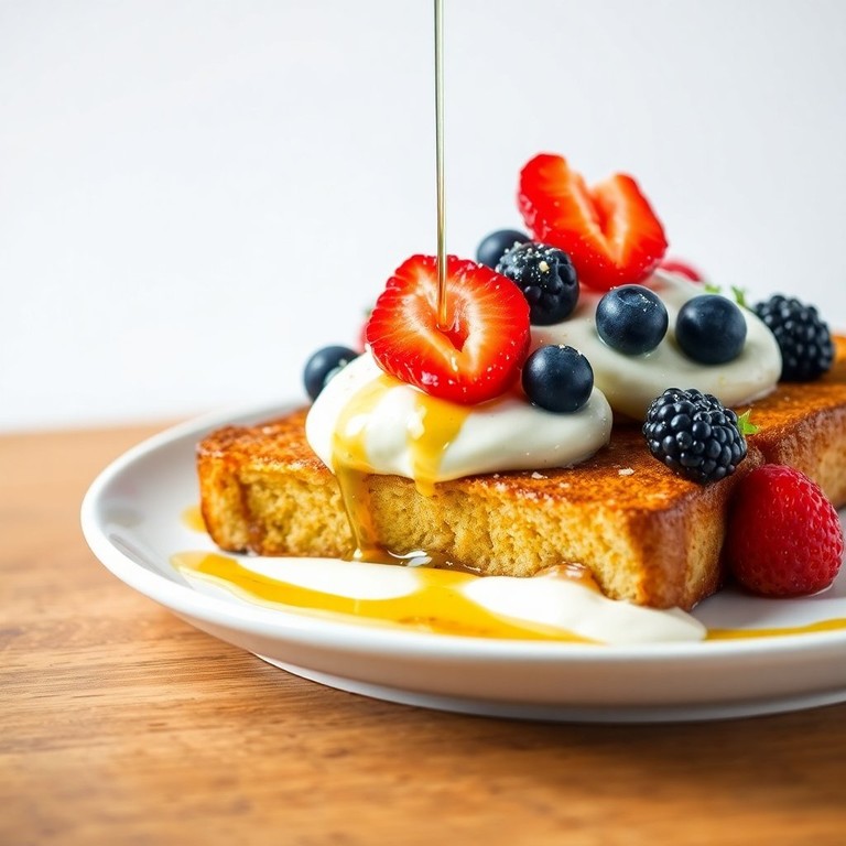 Un desayuno dulce y nutritivo que combina la suavidad de las tostadas francesas con la frescura de las frutas y la cremosidad del yogur. Perfecto para comenzar el día con energía.