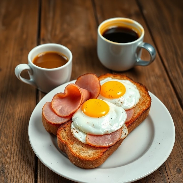 Tostada de Jamón y Huevo con Café