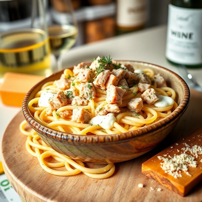 Una deliciosa pasta con una salsa cremosa de yogur y atún, perfecta para una comida rápida y satisfactoria.