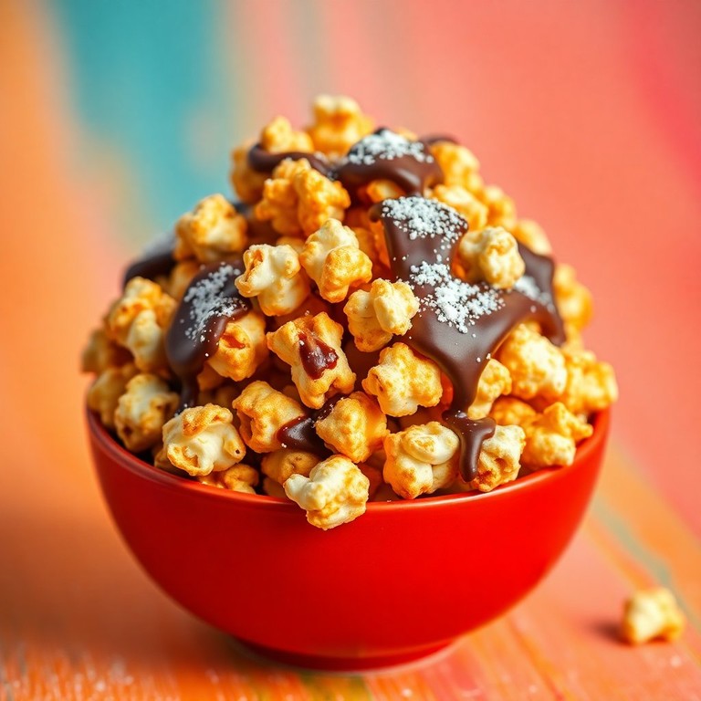 Uma deliciosa combinação de pipoca caramelizada com sabor de chocolate, perfeita para um lanche ou sobremesa.